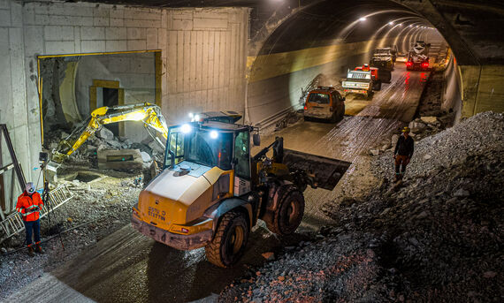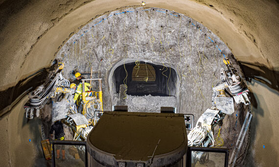 The excursion begins at the modern BBT information center, “Tunnelwelten”, in Steinach am Brenner with a project presentation. Afterward, you will receive protective equipment (helmet, boots, etc.). You will then enter the tunnel via the access tunnel and have the opportunity to visit the cross cavern, the St. Jodok emergency stop, a cavern for the tunnel boring machines, the transfer station, and the Padastertal disposal site.